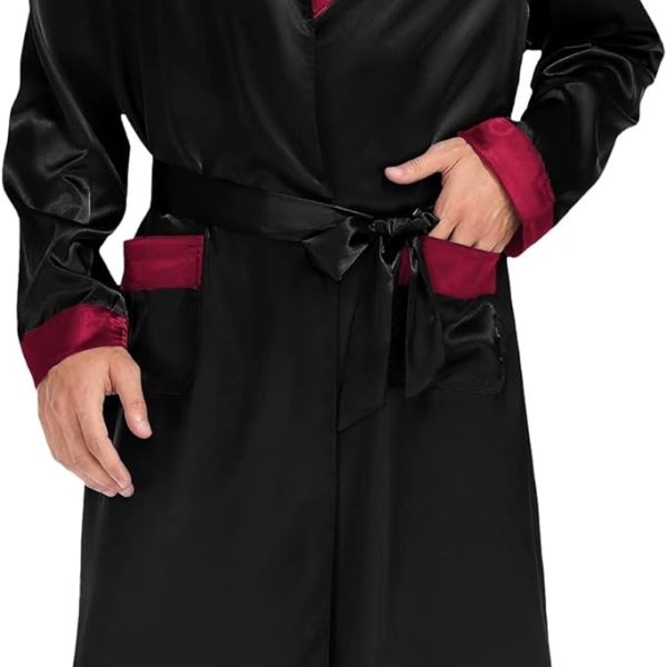 Men’s Satin Robe with Shorts Set Silky Kimono Bathrobe Lightweight Soft Sleepwear