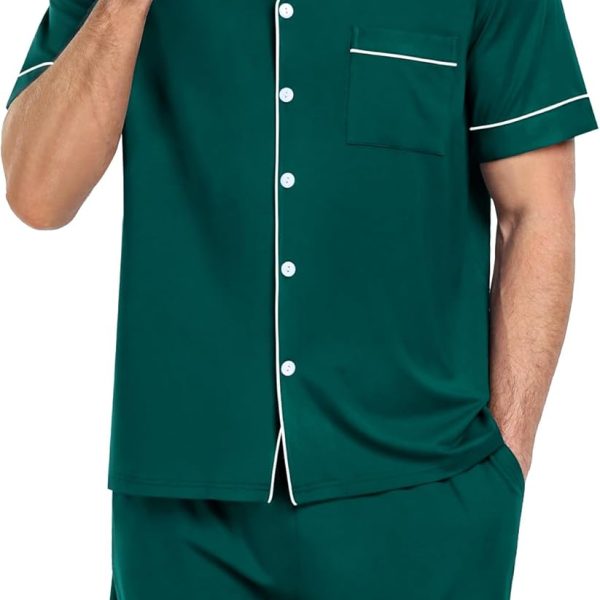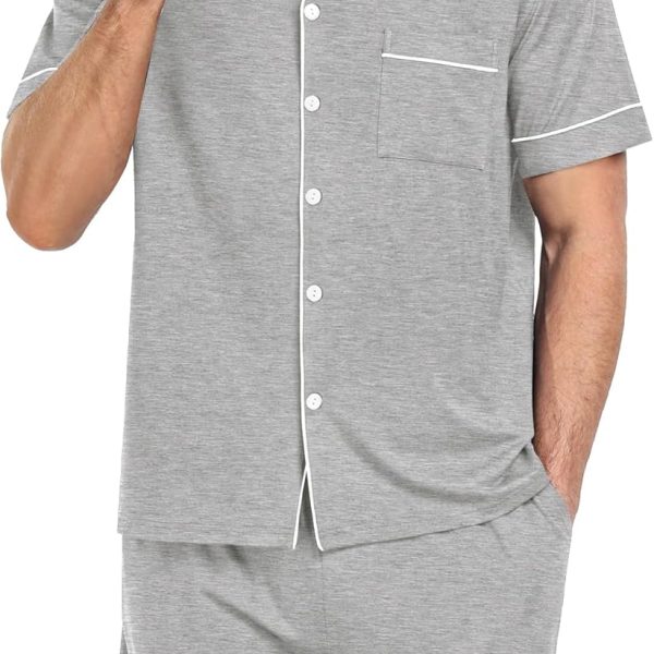 - High Quality Fabric: 95% Polyester and 5% Spandex. US Size. The men’s pajamas set are soft, stretchy, skin-friendly, lightweight, breathable, and cozy. Designed to provide a comfortable and relaxing fit, allowing you to enjoy a peaceful night’s sp.