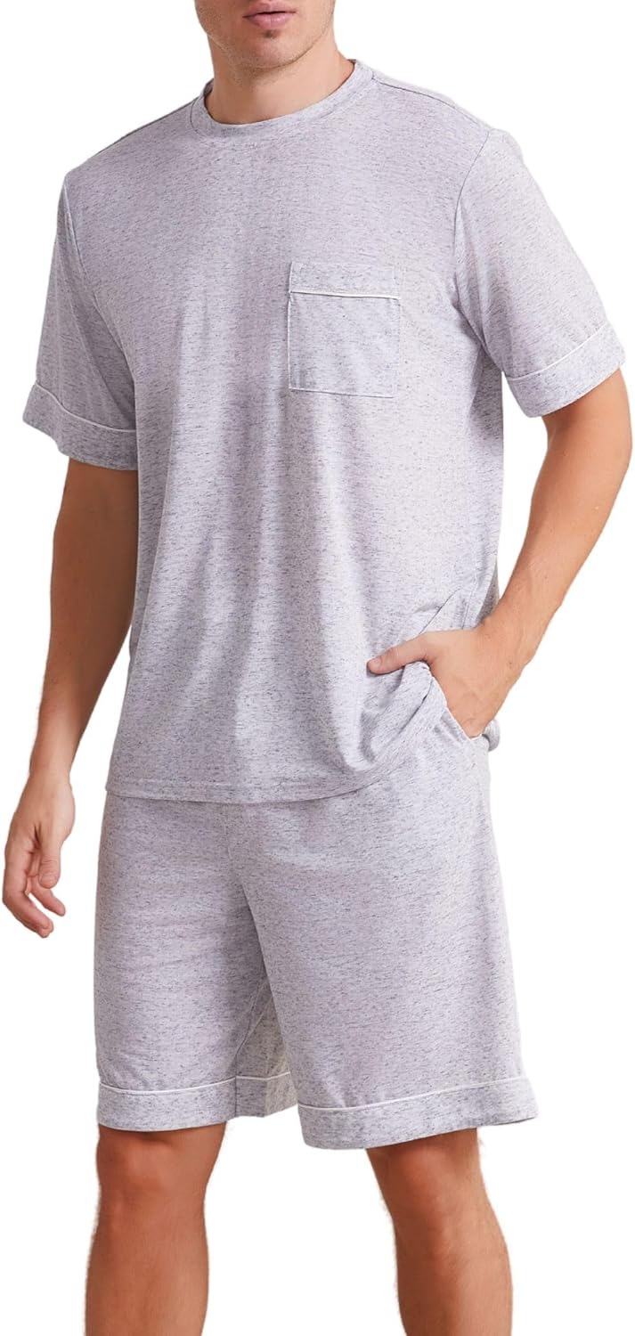 - Simple Look: This men’s two-piece pajama set features a classic round neck collar design. Loose-fitting, soft, and comfortable, it is the perfect loungewear for the home.